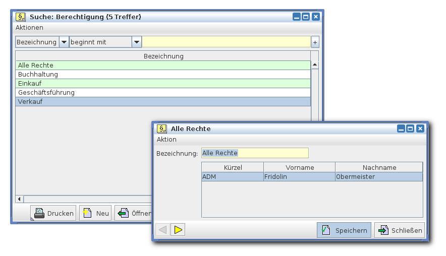 Eine Berechtigung wird lediglich mit einem Namen definiert, der den Inhalt der Zugriffsberechtigung beschreiben soll. Welche Zugriffsmöglichkeiten sich tatsächlich dahinter verbergen, wird in der Rechtezuweisung (siehe auch -> Rechtezuweisung) angegeben.