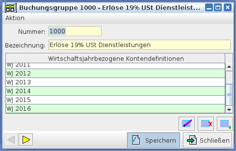 In diesem Bild werden die Daten zu einer Buchungsgruppe angegeben. Dabei haben die einzelnen Felder folgende Bedeutung: