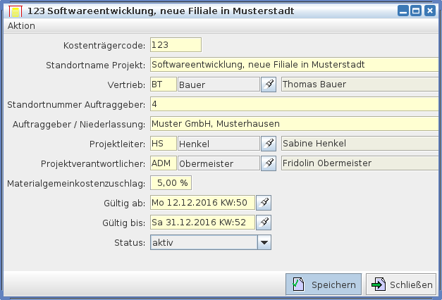 Haben Sie alle Daten zum Kostenträger eingegeben oder verändert und sollen diese im System gespeichert werden, dann klicken Sie die Schaltfläche [Speichern] mit der linken Maustaste an oder betätigen die Tastenkombination Strg-E. Damit werden alle Daten wie angezeigt zu dem Kostenträger gespeichert.