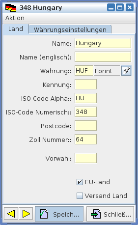 Hier werden die Daten zu den Ländern erfaßt. Die Felder haben folgende Bedeutung: