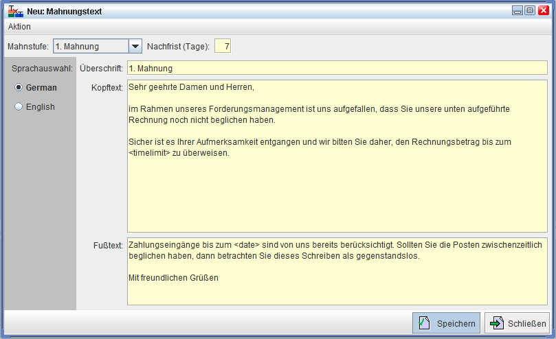 Mahntexte werden zum Ausdruck der Mahnungen verwendet.