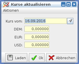 Zum Aktualisieren der wichtigsten Wechselkurse ist ein eigener Dialog vorhanden.