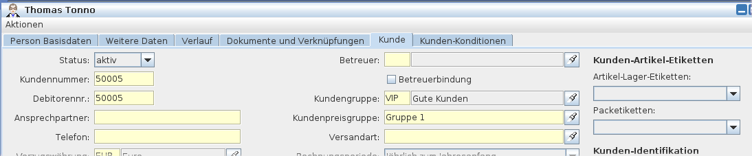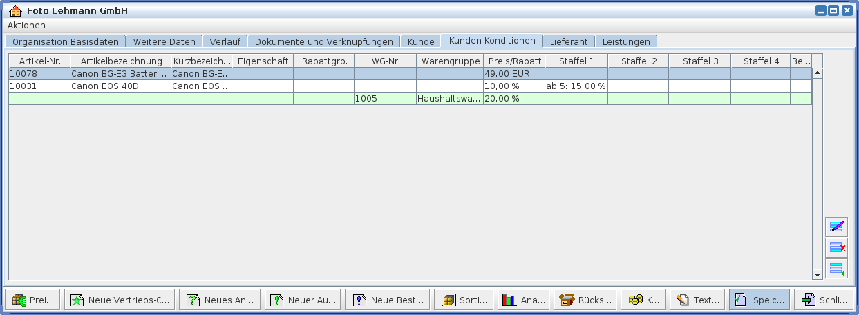 Zum einen hat man die Möglichkeit einem einzelnen Kunden bestimmte Konditionen hinzuzufügen.