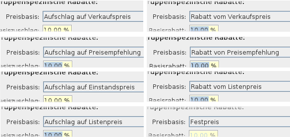 Dann sollte man natürlich, je nachdem, entweder einen Basiszuschlag oder Basisrabatt eintragen. Gibt man als Preisbasis "Festpreis" an, kann man auch in das Feld "Grundpreis" einen Betrag eingeben.