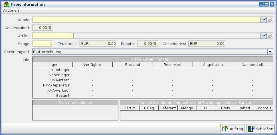 Zur Anwendung der Artikelpreisinformation öffnet sich folgender Dialog: