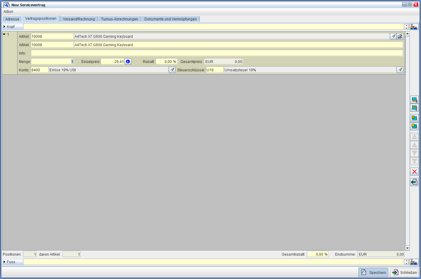 Artikelpositionen, soweit sie denn überhaupt in Serviceverträgen benötigt werden, verhalten sich ebenso.
